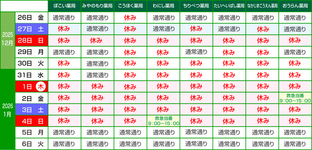 12月6日(土)こうほく薬局臨時休業のお知らせ